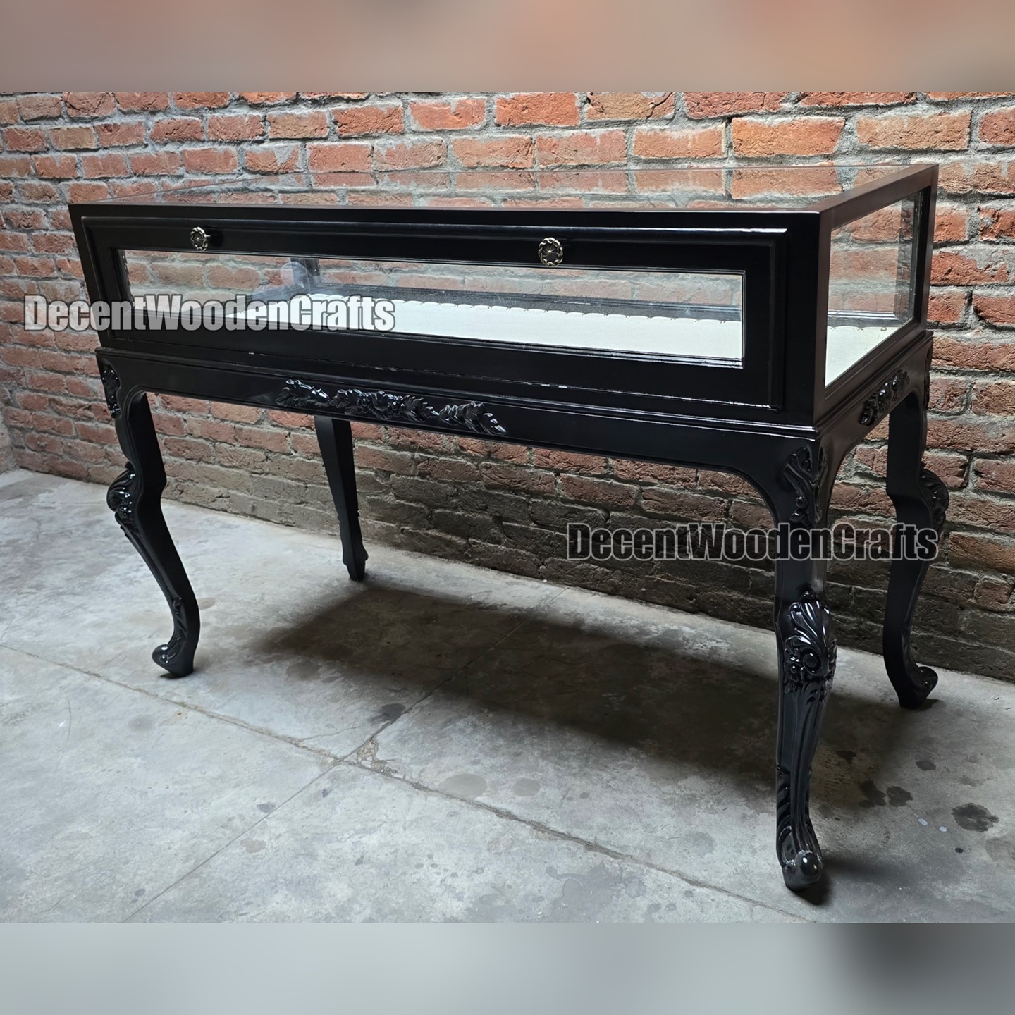Expertly manufactured by skilled artisans at Decent Wooden Crafts, this showcase reflects the rich heritage of Saharanpur wood carving combined with modern showroom aesthetics. Built using high-quality solid wood, it ensures durability, strength, and long-lasting performance.