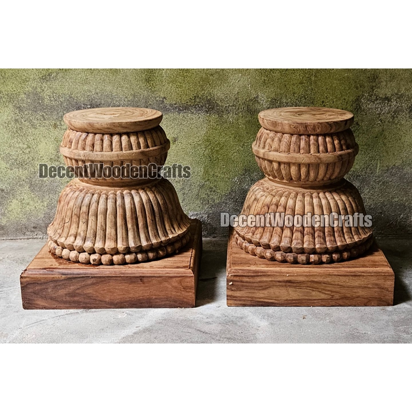 Wooden Column Base / Antique Wooden Pillar Stand – Hand Carved Solid Wood