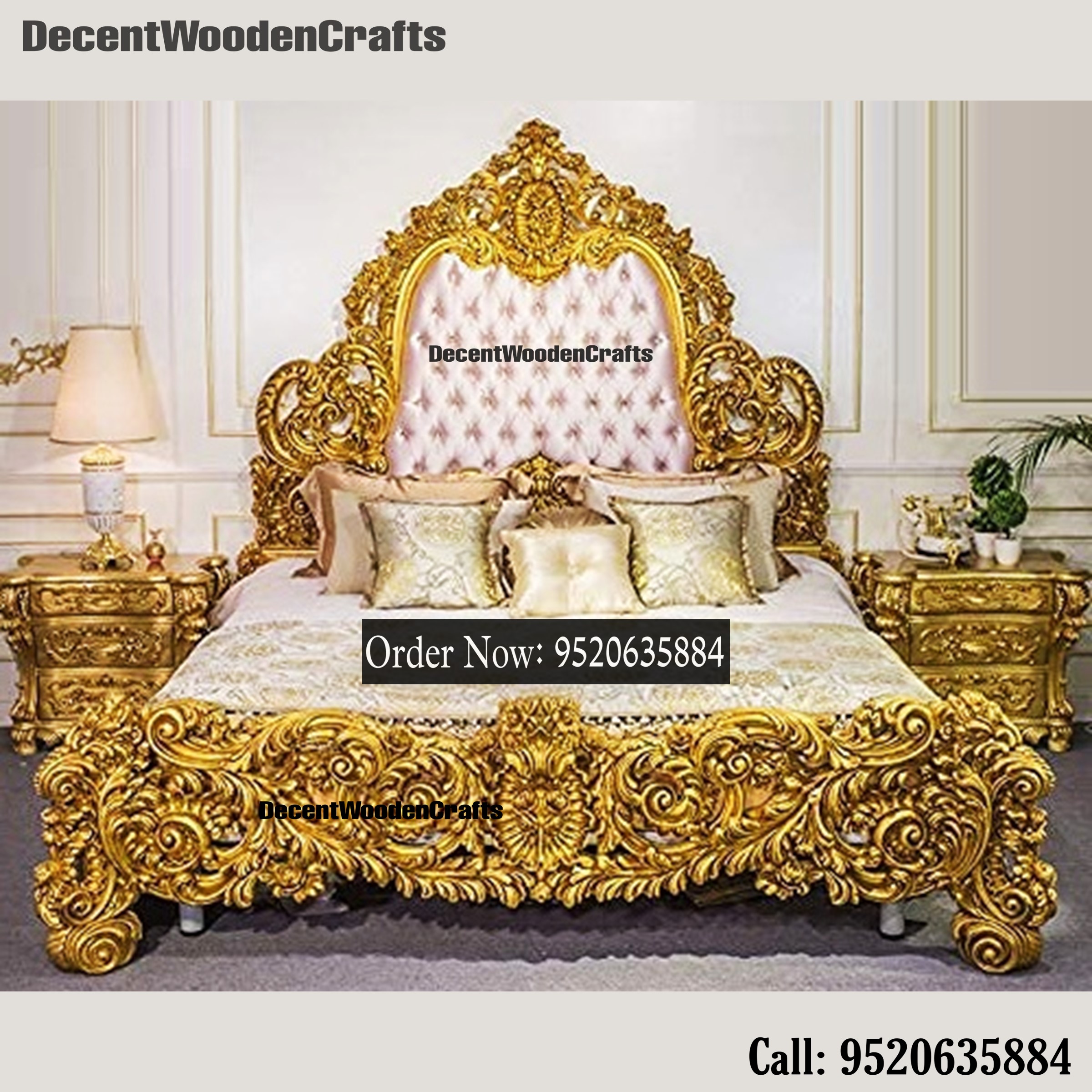 Built to last, our wooden beds are strong, spacious, and exceptionally durable. Each piece features cultured, hand-carved designs that enhance its aesthetic appeal while adding a sense of grandeur to your bedroom décor. This beautifully crafted bed blends classic charm with lasting functionality, making it a perfect centerpiece for any bedroom.